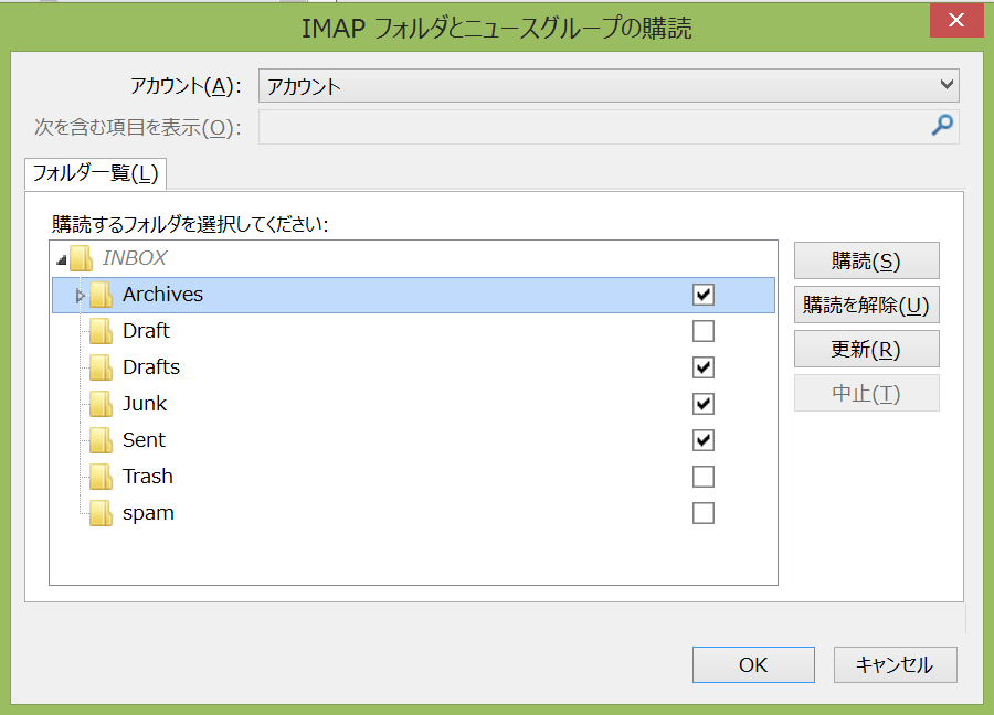 LSUBコマンドを用いて、購読メールボックスの一覧を取得できない理由がわかりません。