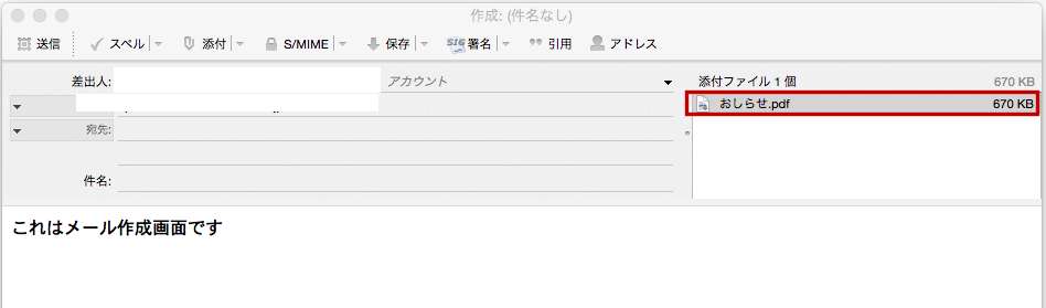 - メール作成画面から開く→デスクトップ画面に何も残らず、PDFファイルが開く