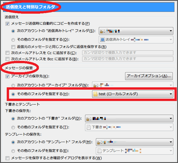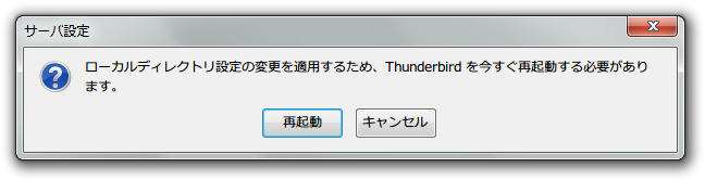 注意:ローカルフォルダのメッセージの保存先を変更した際は、必ず再起動を促す