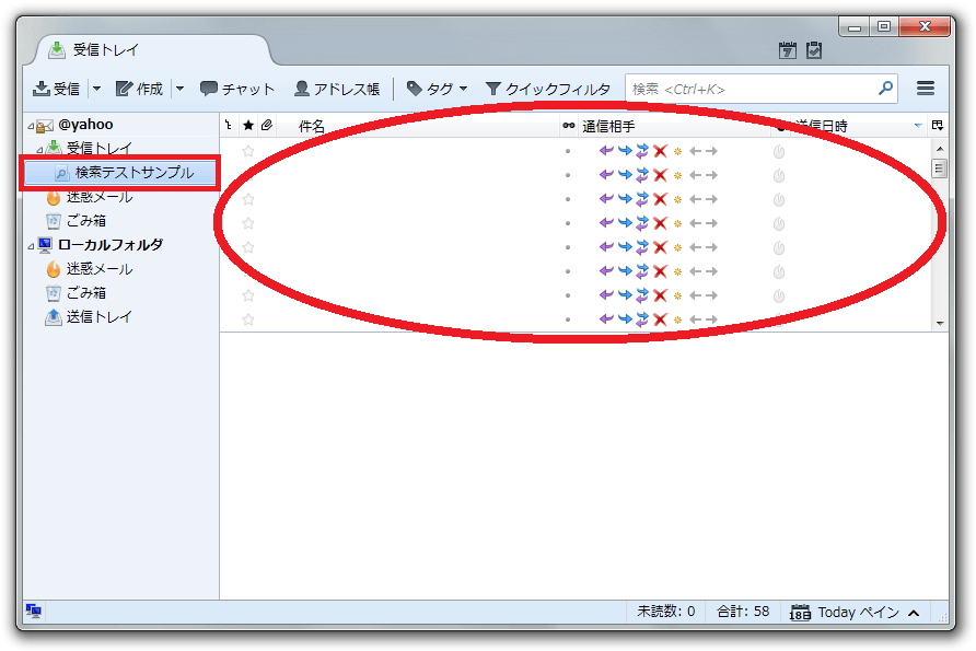 [2.作成した検索フォルダ内のメッセージをスレッドペインで選択や他のフォルダに移動して戻る]