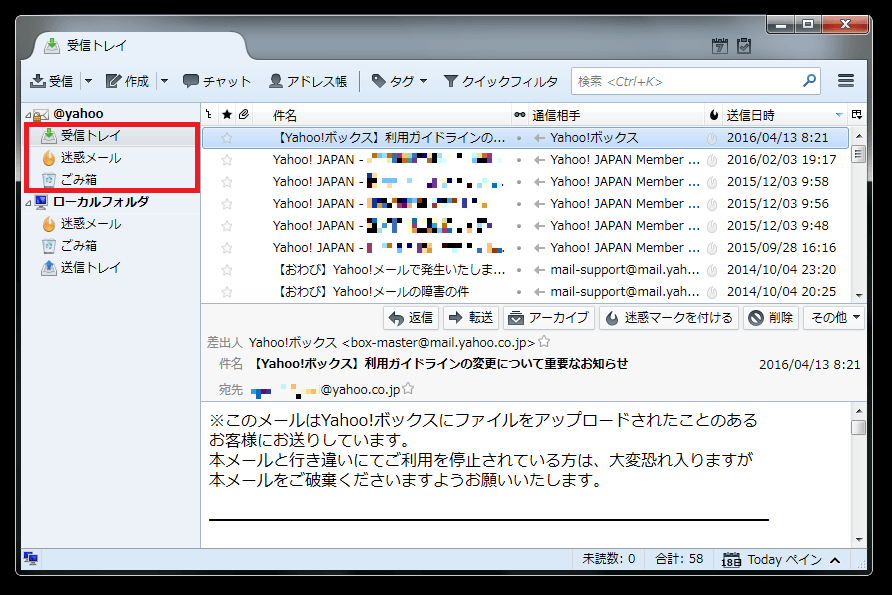 [環境:OS:Windows 7 Professional SP1 + Thunderbird 45.0 日本語版]