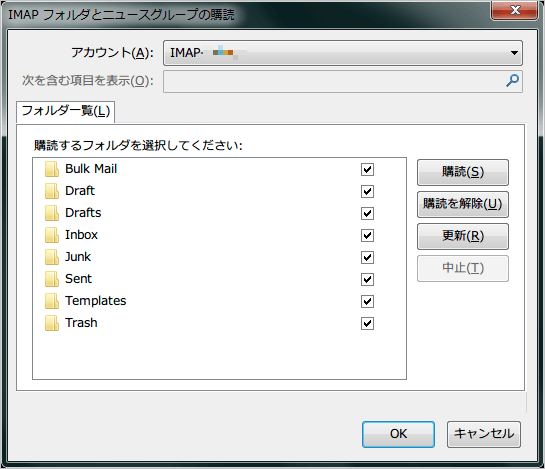 2.Thunderbird 側の該当 IMAP アカウントの設定内容や購読設定は以前と同じままですか?
