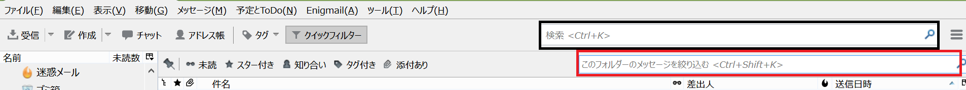 コメント: 上(黒枠)がグローバル検索、下(赤枠)はクイックフィルタバーのもの/Win8.1+Tb52.2.1