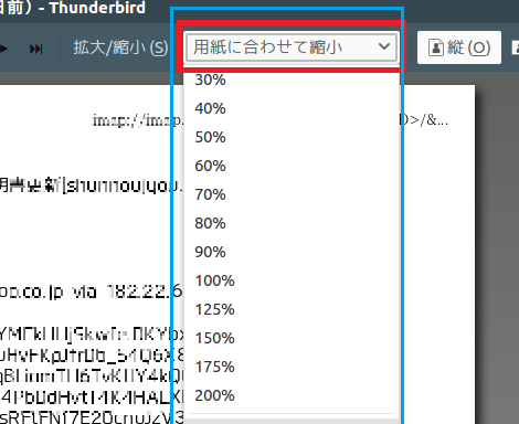 例えば100%を選択して一旦プレビューを閉じる。更にThunderbirdも終了させて、再度起動させて再び印刷プレビューを開くと前の設定(100%)のままになってます。