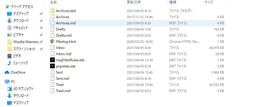 メールが移行出来ない Thunderbirdフォルダは次のどれでしょうか??