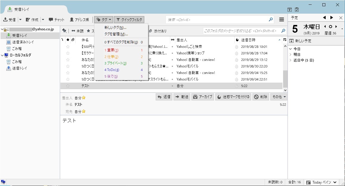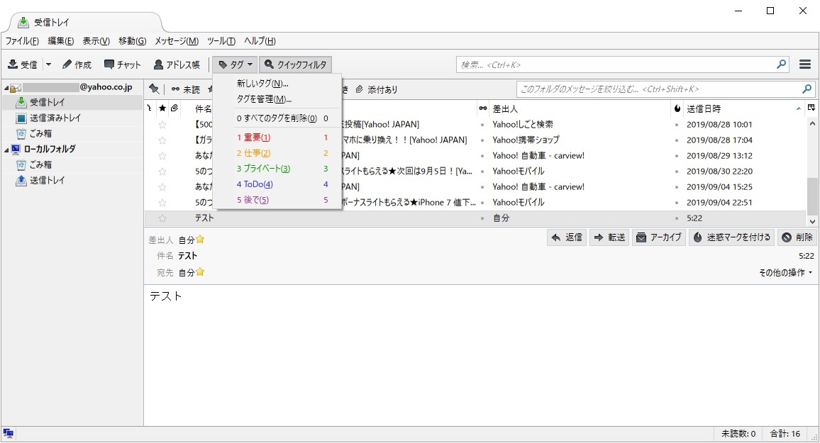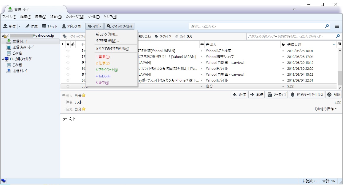 しかし、タグでしたら、右クリック>タグ や、メールツールバーのタグボタンで開くメニューから選択するだけで、スクロールバーは出てこないはず。