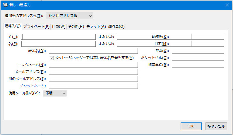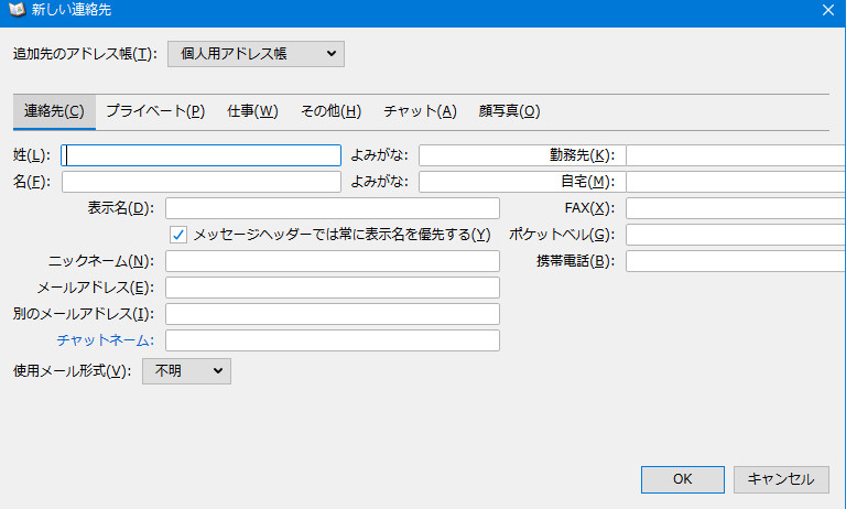 Thunderbird 78にアップデートをしてからアドレス帳の新しい連絡先の