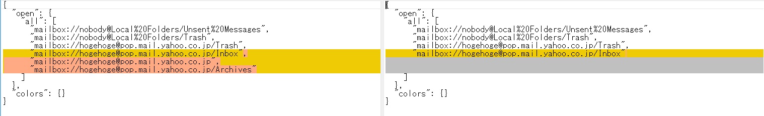 という感じになっており、folderTree.json だけ書き換えて Thunderbird を起動すれば、フォルダーの開閉状態に反映されます。