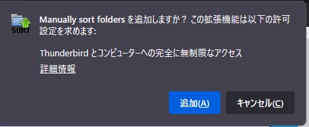 Manually sort foldersを追加しますか? この拡張機能は以下の許可設定を求めます: