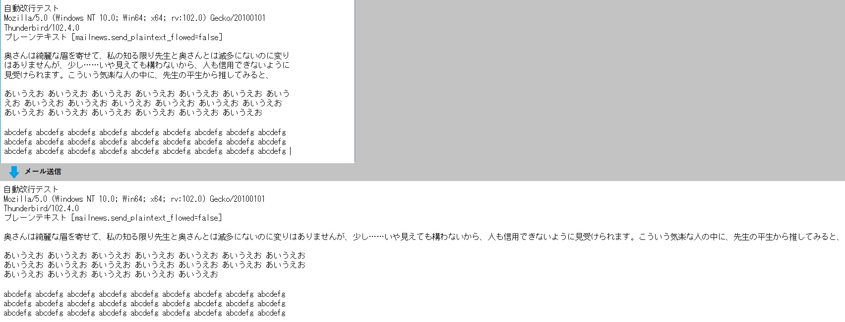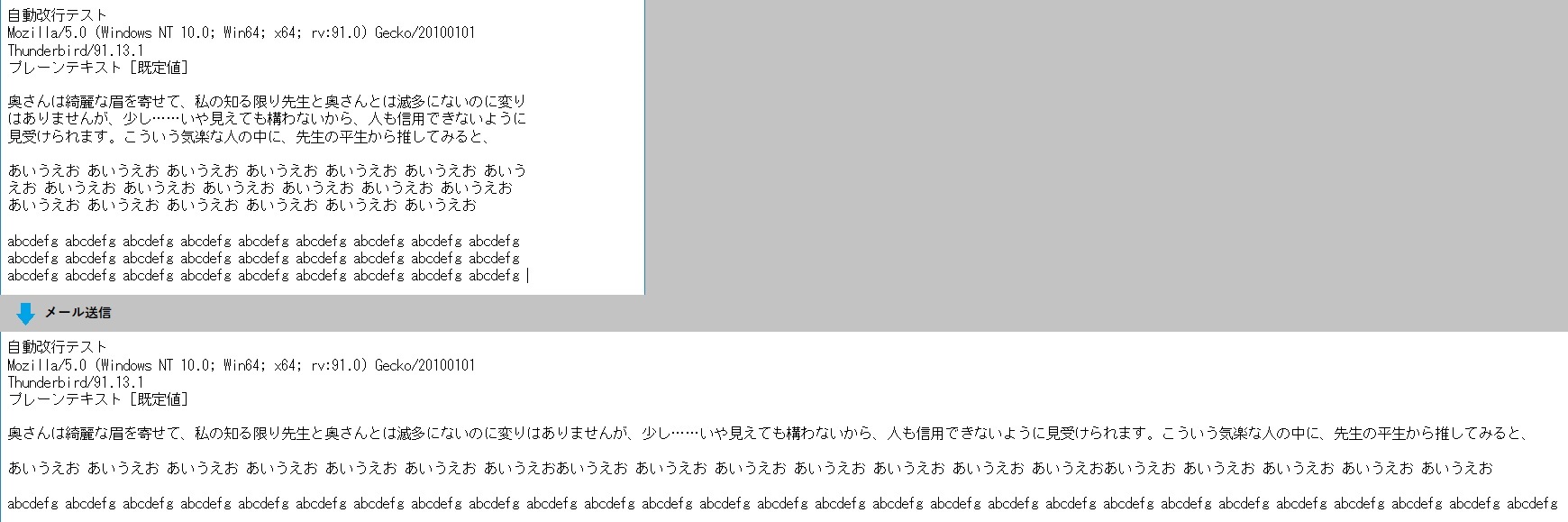 Re: Thunderbird 91系、一部の文字しか自動改行できないリンク先記事の添付画像の確認結果を見てください。