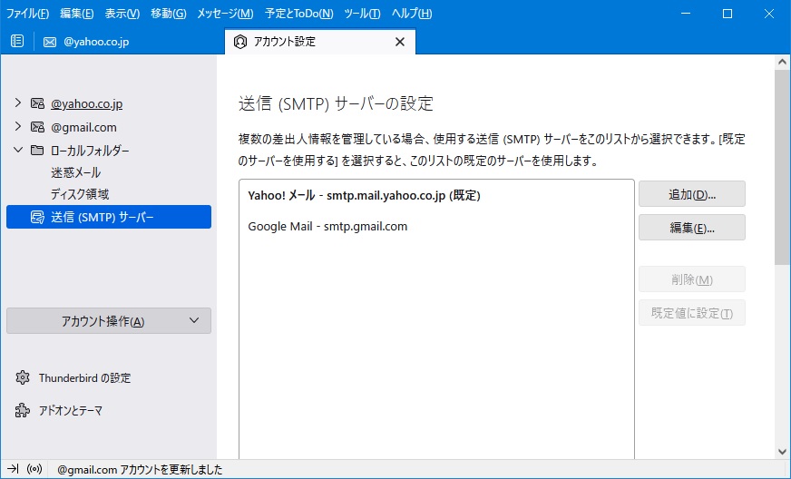 TBには他にも、個人のGmailもIMAPでアカウント設定しています。