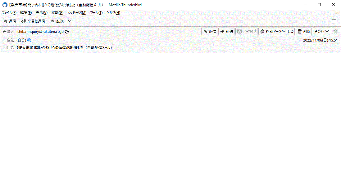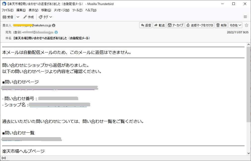 楽天からのメールの形式等がなにか問題を引き起こすトリガーになっている可能性もあるかもしれませんが、たまたまかもしれません。