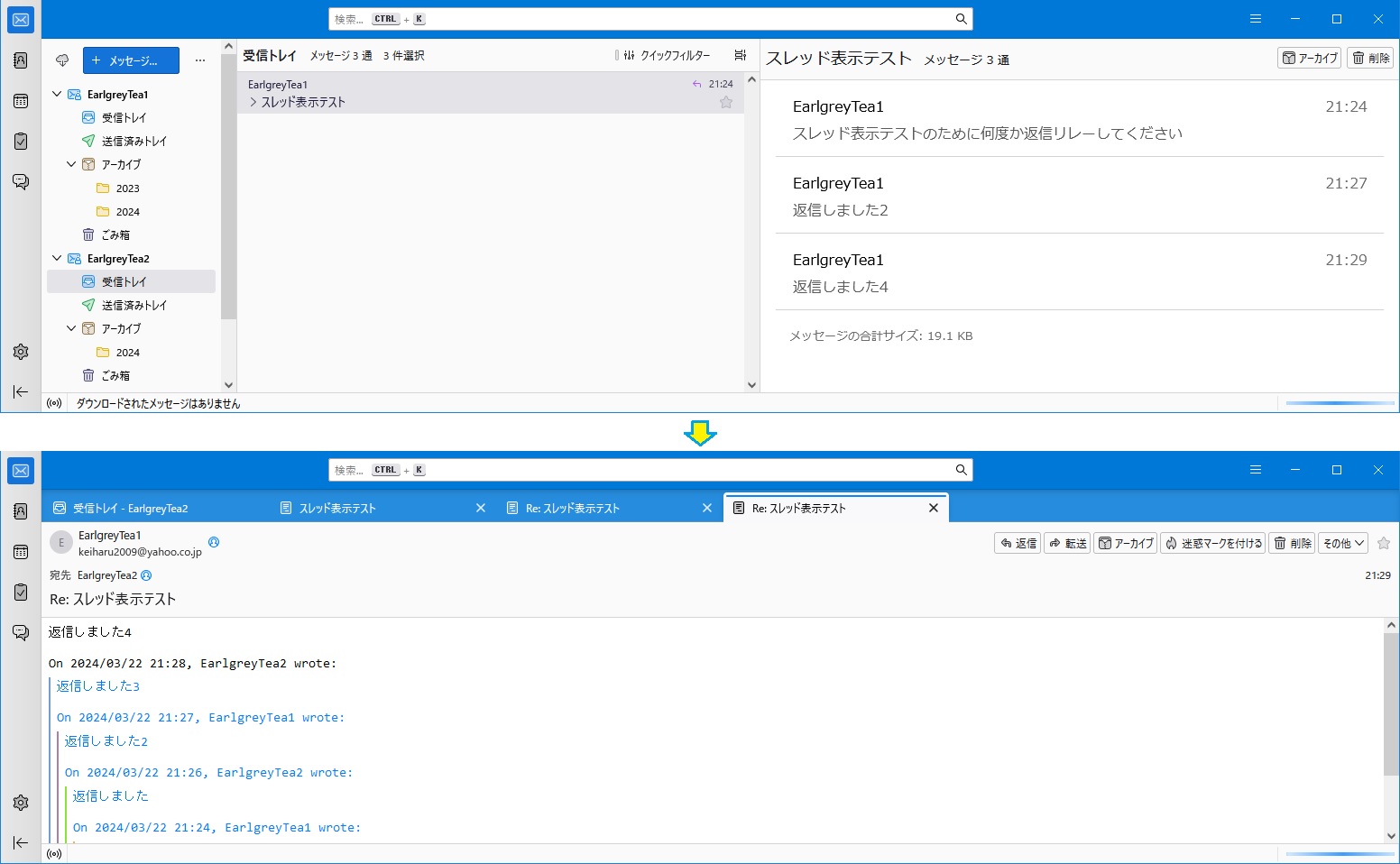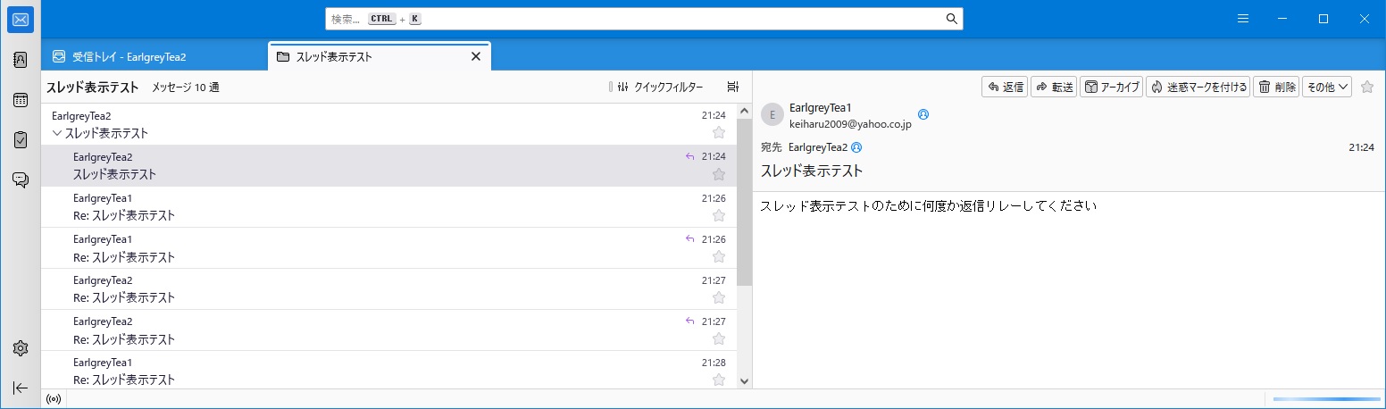 コメント: 1つのタブに2ペインで左にスレッドのメッセージリスト、右に選択したメッセージを開く