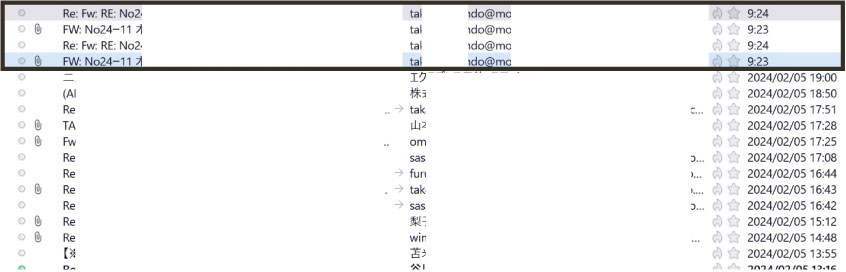 →問題メール以外は表示されています