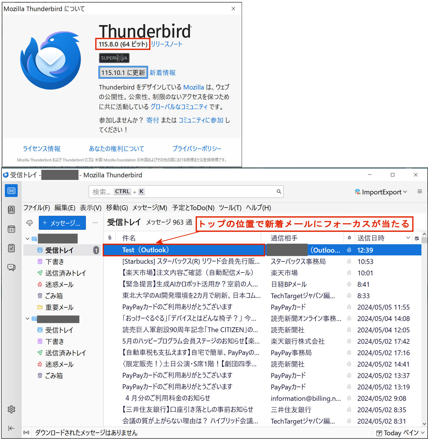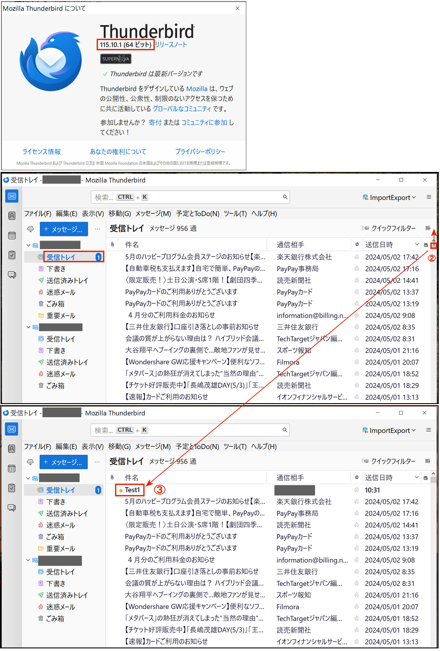 この方法ならいつものThunderbirdのプロファイルには影響しません。