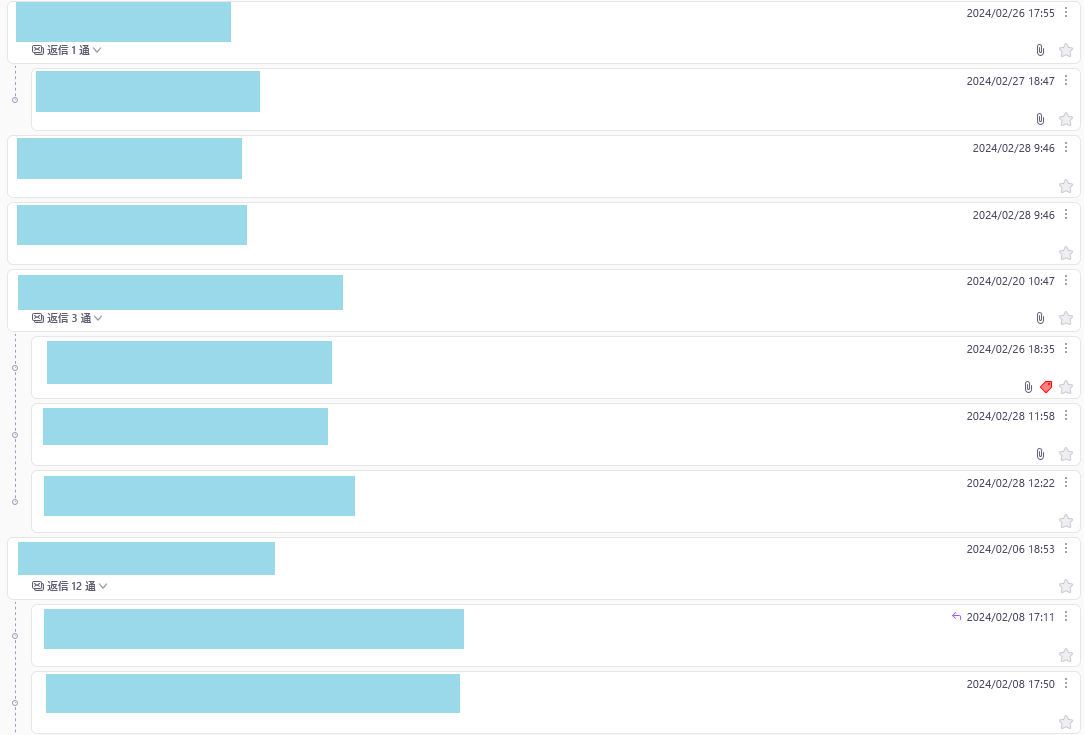 メールを受信日時順にしているのですが、スレッドへの返信について、古いスレッドに含まれた形で受信するため、一番上に表示されず見逃してしまいます。
