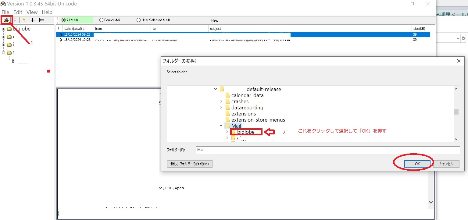ようは「inbox」などのmboxファイルのあるフォルダを選択するということです
