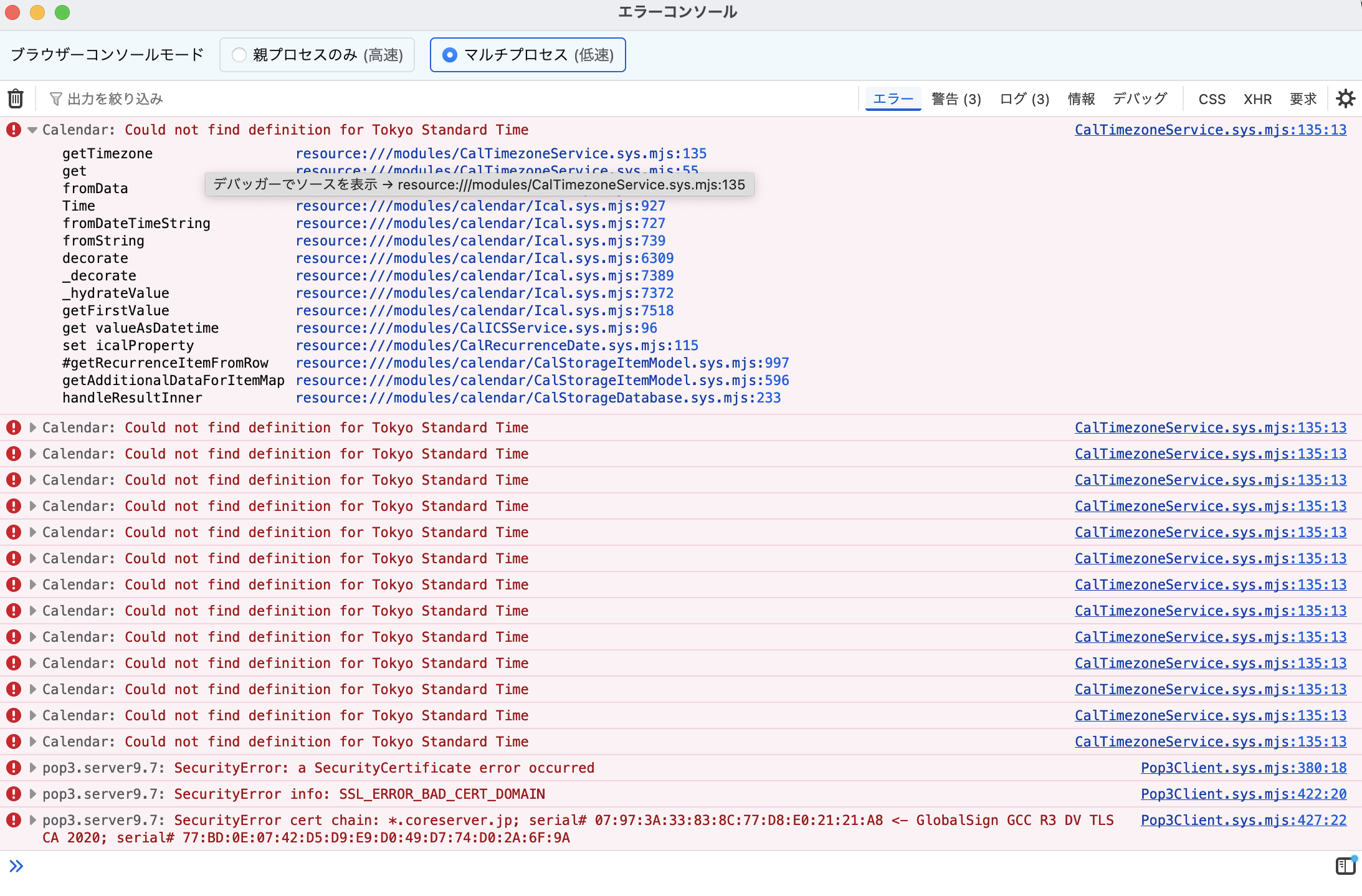12/13(金)あたりからThunderbirdを一度終了させ、新たに起動しないとメールの受信ができなくなりました。