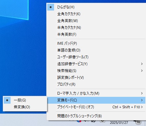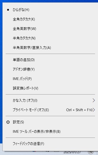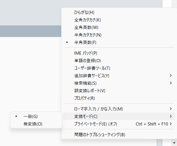 また過去トピックに出てきた「無変換モード」もIMEオプションメニューにありません。