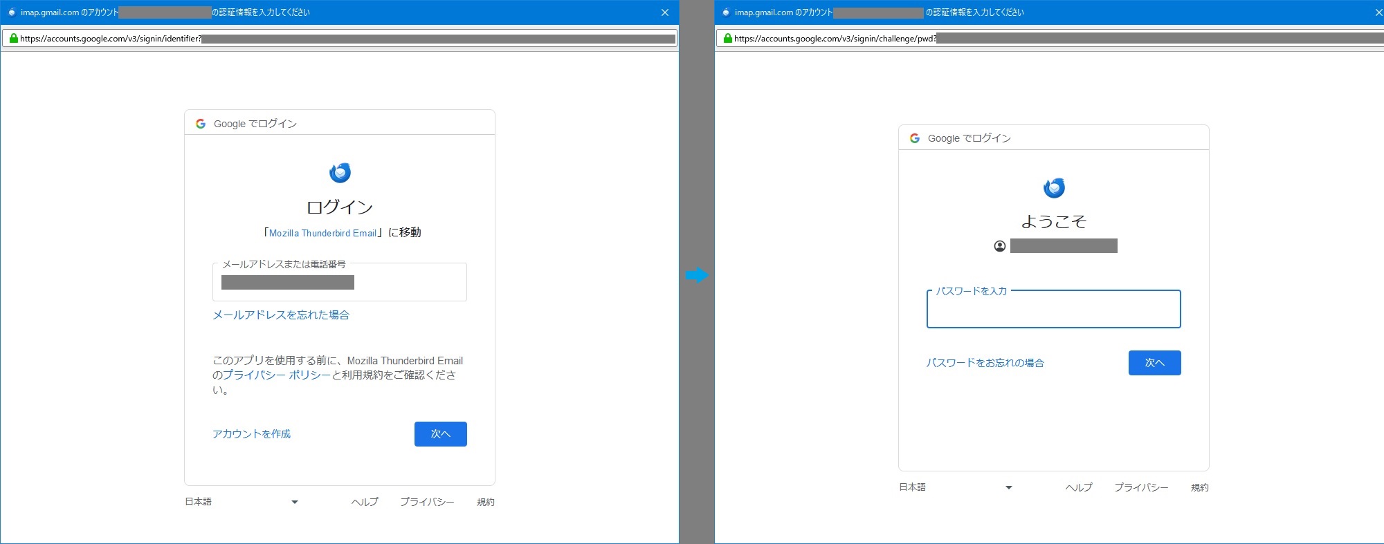 いつからか忘れましたが、サンダーバードを使っていると、Googleでログインという画面が出てくるようになりました。