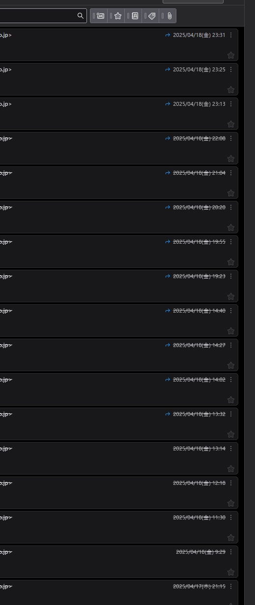 画像のように取り消し線が差出人と件名の表示にも付いてます