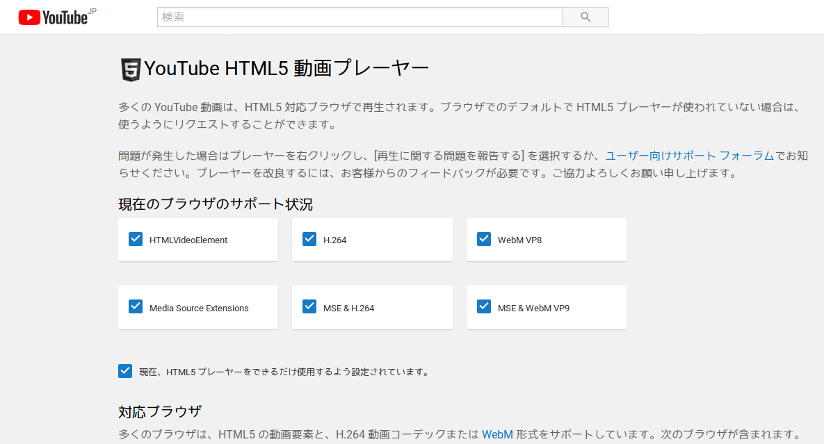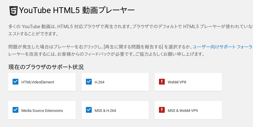 WebM/VP8 と MSEWebM/VP9 はまだ赤ですので認識されていないです。