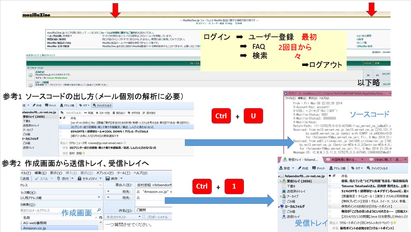 多くの方は上記のような感想を持たれたようです。ご指摘ですので、私も初めから読み直してみました。確かに私の口足らずが問題だった点がありますが、同時に、経験者である皆様が故の思い込みがおありだったことも強く感じます。Thunderbird(以下Tbと略します)やこのフォーラムに詳しくない者とそれに熟達された皆様とのギャップがまねいた問題でもあります。以下に議論の初めの段階に絞って問題を整理してみます。