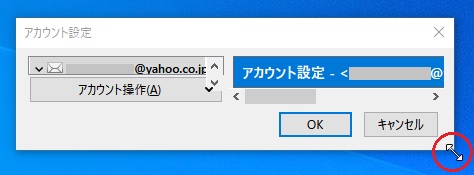 アカウント設定画面右下の角をドラッグでリサイズが可能です。
