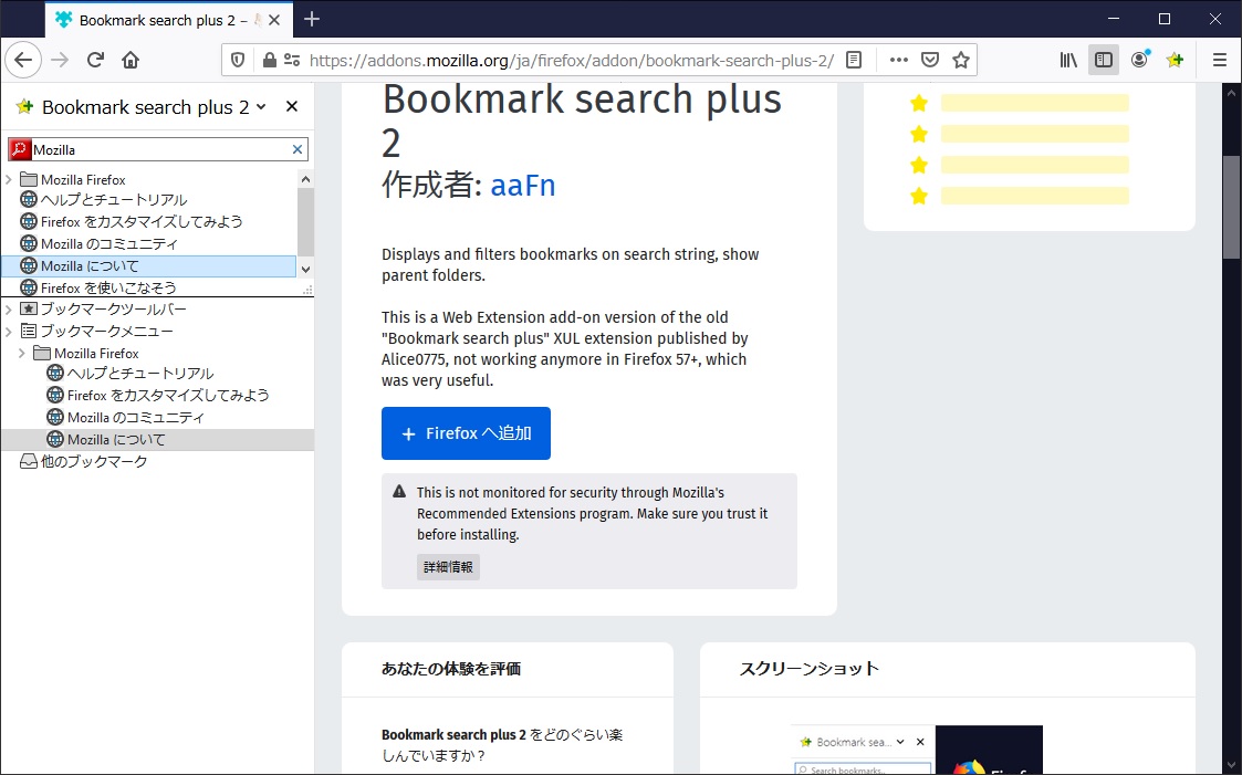 Ver 0.2.6 は「このアドオンは壊れているため、インストールできませんでした。」となったため、代わりに Ver 0.1.4 をインストールしてみました。