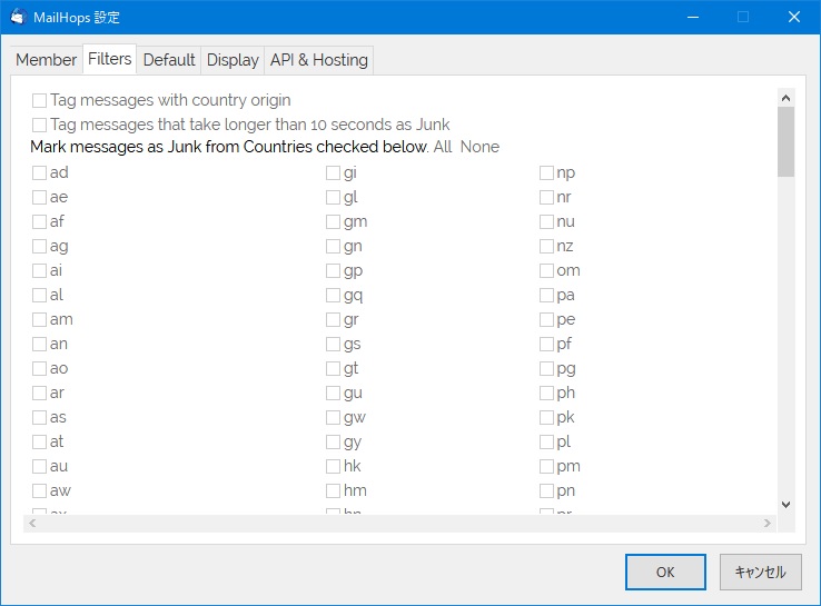 Thunderbird 68用の MailHops 3.8.1 はレガシーアドオンで、オプション設定も別ダイアログを開くタイプです。