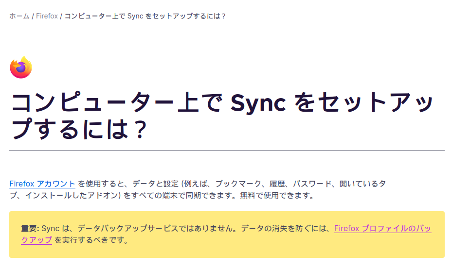 コメント: Firefox Sync 機能は、複数デバイス間の同期機能として説明されるが、