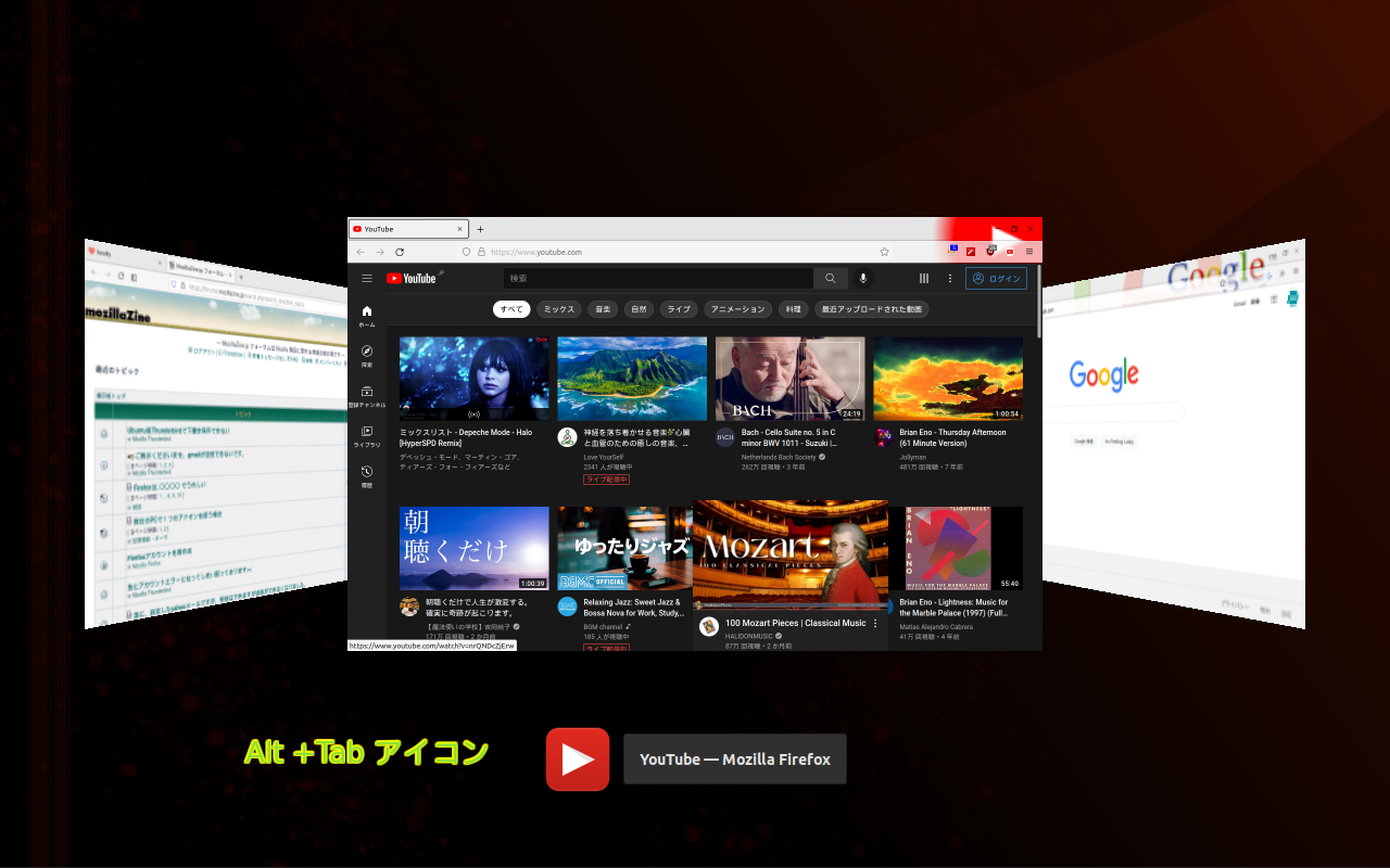 コメント: ②ALT+Tab で表示されるタスクアイコンは、Firefoxの狐丸ではなく自分で選んだアイコンになったりもします。